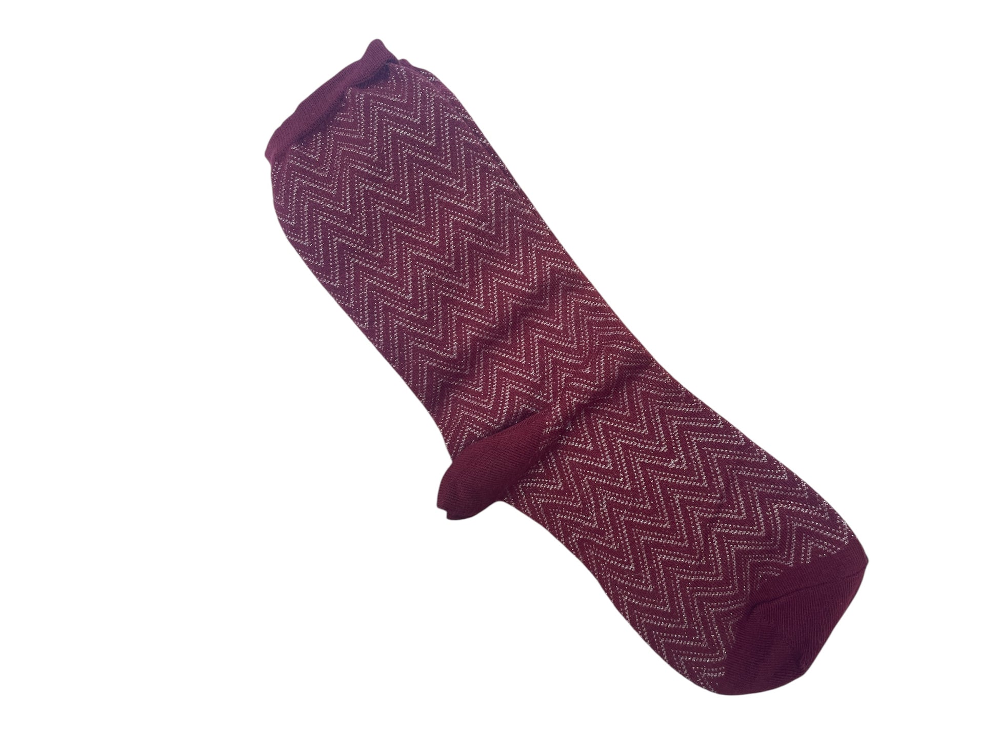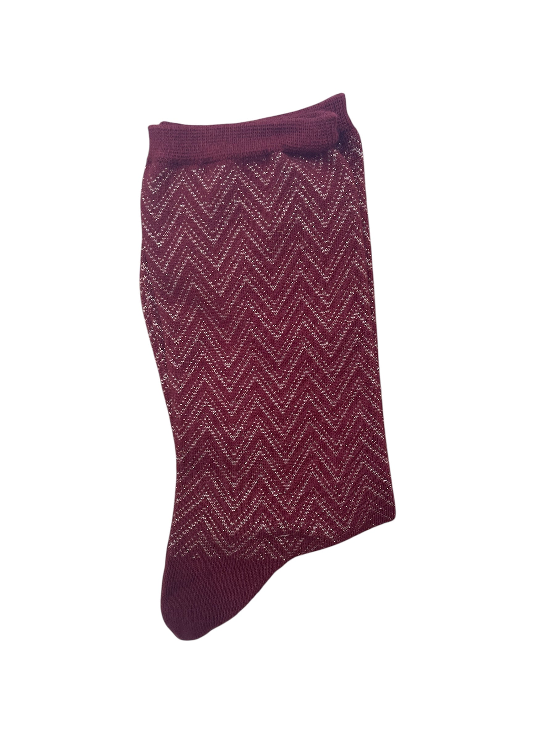 Par de calcetines burdeos con espigas de brillante.