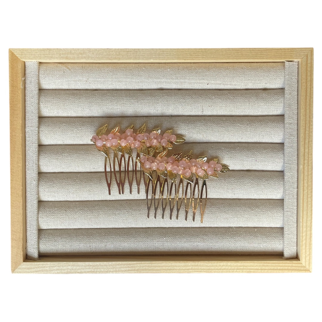 Peineta dorada de acero inoxidable y bolas rosa clarito